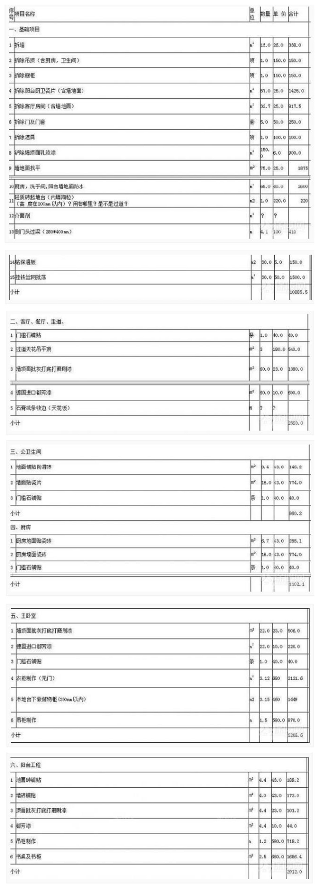 下面隨小編一起去看一份詳細2017昆明裝修報價單
