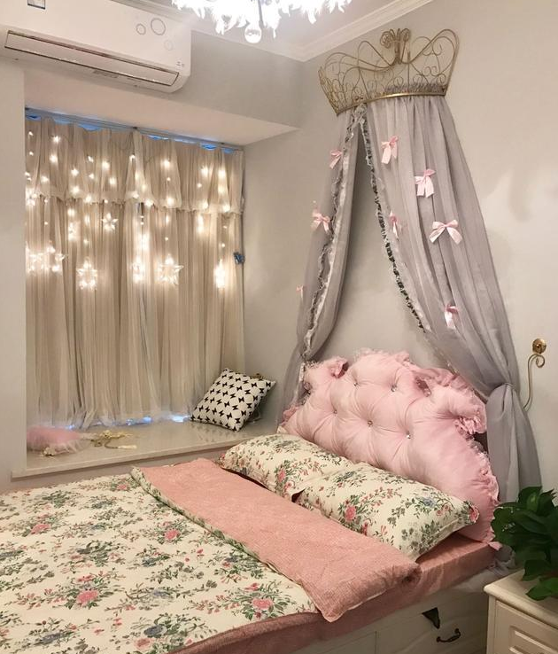 在網(wǎng)上買了軟軟的床頭靠背,還有夢幻的紗簾和星星燈,看的出來十分有少女心。