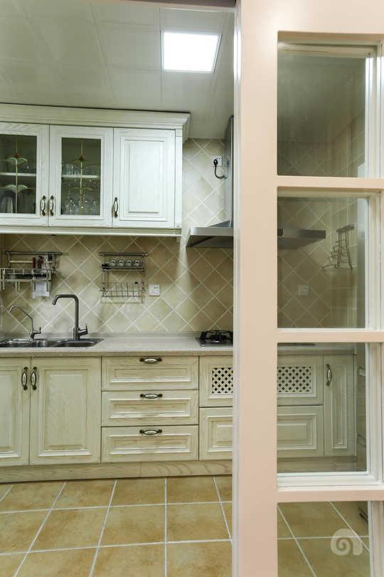 沒有采用美式居家常用的開放式的設計,用玻璃門既能保持空間的完整性也符合中國家庭的烹飪習慣,避免油煙的侵擾。