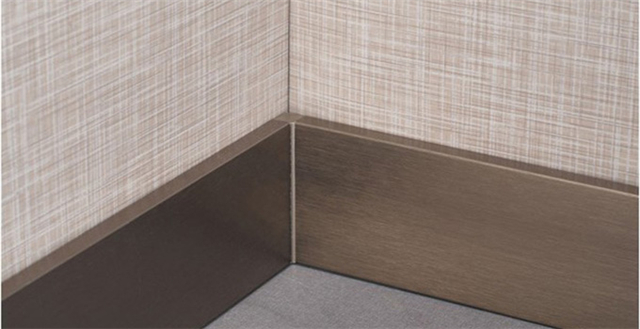 不銹鋼踢腳線由不銹鋼材質制成,工藝較為復雜,安裝也比較復雜。但優點是經久耐用,幾乎沒有任何維護的麻煩。不銹鋼材質給人感覺較冰冷,一般適合于一些現代風格的裝修中。