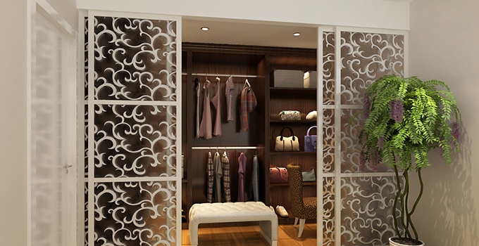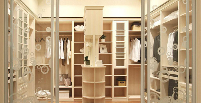 衣帽間可由家具商全套配置,也可以在裝修時與房總體設計制作。為節省空間,其大門多設計為推拉式,里面的衣櫥一般不用做門,或用透明玻璃做道防塵門,這樣方便在選衣時一目了然。