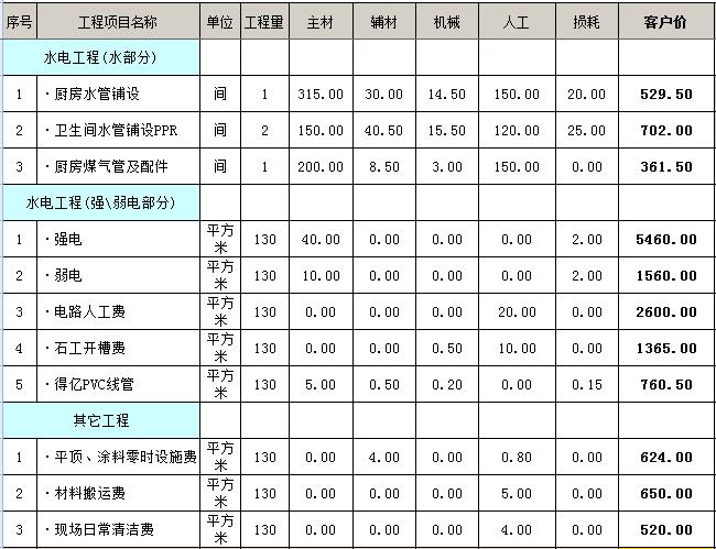 133平米的房子裝修要多少錢?——半包裝修預(yù)算清單