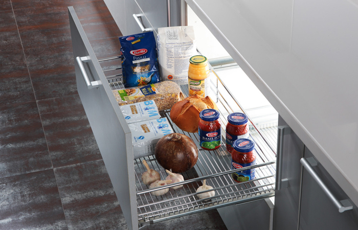 拉籃具有較大的儲(chǔ)物空間,而且可以合理的切分空間,使各種物品和用具各得其所。根據(jù)不同的用途,拉籃可分為爐臺(tái)拉籃、三面拉籃、抽屜拉籃、高深拉籃、轉(zhuǎn)角拉籃等。