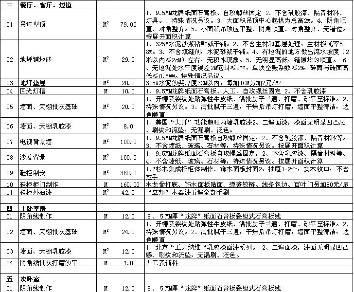 餐廳、客廳、過道、主臥、次臥裝修報價