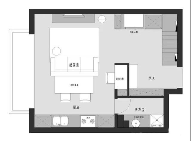 沙發一側設計了一個既能做工作臺,又能做吧臺的多功能區