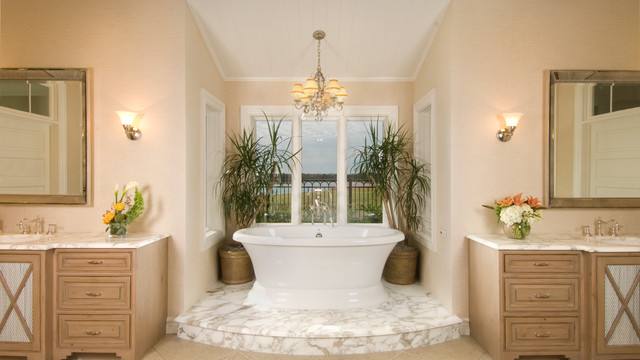 就結構上來看,浴室柜可以分為掛墻式和落地式兩大類。掛墻式,就是主柜與地面完全分開,掛在墻上。由于其與地面分離,能起到很好的分區作用。而主體立在地上的就是落地式。