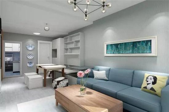 (3)天花板需要選擇亮度低的色彩,因為亮度高的色彩會給人壓迫感。通常是使用純白色,也是最為安全的顏色選擇,白色適合多種風格的裝修,屬于比較百搭的色彩,或者我們也可以選擇加入大量白(合白、淺藍)、灰或接近白的顏色。