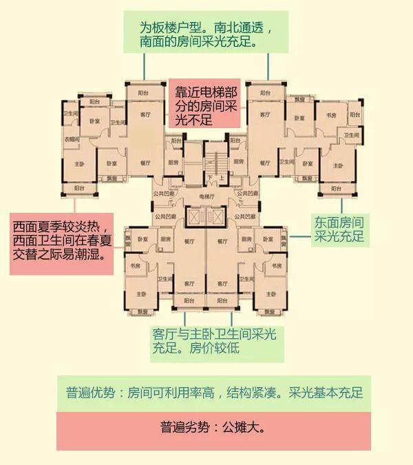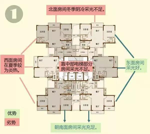 高層樓房的選擇不僅要看整個(gè)樓盤的布局,更要兼顧到樓房的布局,無(wú)論是傳統(tǒng)的板式建筑還是塔式建筑,甚至如今新型的板塔結(jié)合,在選擇上優(yōu)劣各有,下面幾張圖可以教你輕松看懂高層樓房布局,選擇最佳布局的樓房。
