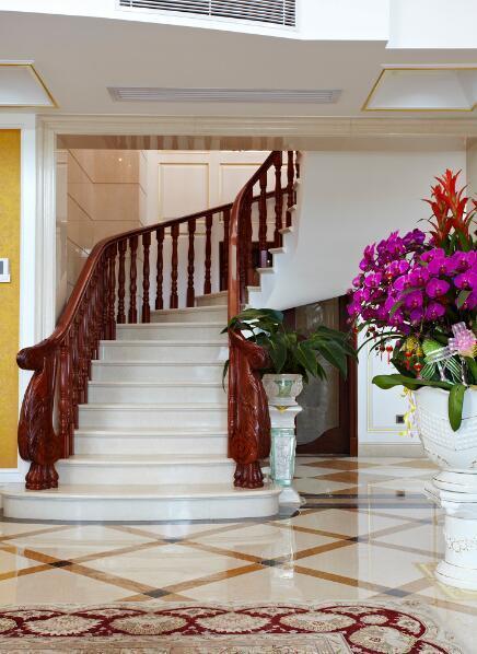 木質扶手是最常見的,如果家里裝了地板,那么材質和顏色更好搭配,施工也簡單的多。整體效果大氣、質感厚重,觸摸起來有溫暖感。不過后期養護需要多費心思才行。