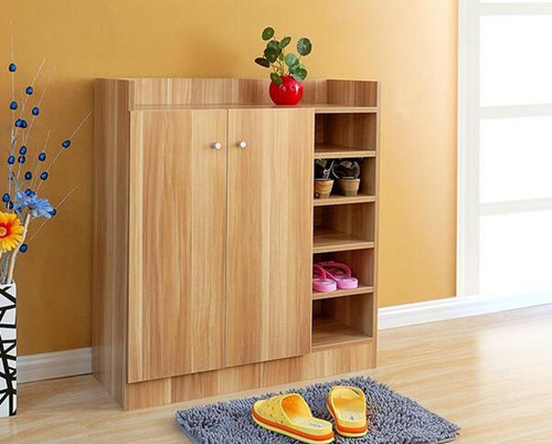 這款整體鞋柜設計非常簡單,原木色的實木材質,看起來更加整潔,在鞋柜的一側設計了許多的開放式小格子,可以用來擺放鞋子,上面的展示臺可以放一些裝飾品,有很好的裝飾效果。
