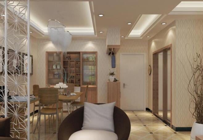 進門玄關的走廊吊頂裝修,采用長方形樣式設計,與餐廳吊頂相對應,層次分明,在筒燈和燈帶的裝飾下,營造出明亮溫馨的家居氛圍。這樣的家居吊頂設計頗具特色,且極富立體之感,美觀又實用。