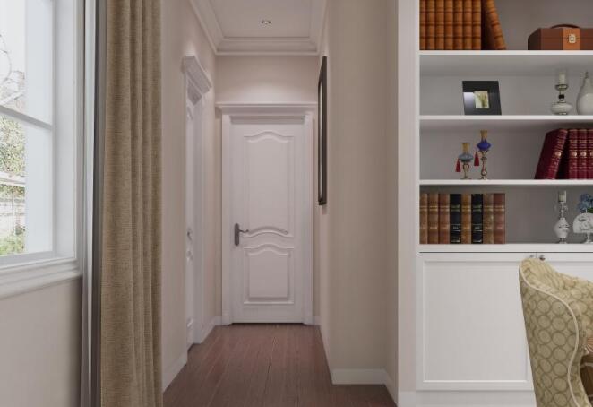 安靜的走廊沒有過重的裝飾,白色實木門與白色石膏板吊頂相呼應,將走廊空間打造的更加寧靜。簡單裝修的過道吊頂,層次劃分細膩,配以小型的內嵌式筒燈,整體裝修簡約美觀,帶給人舒適之感。
