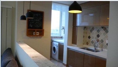 第四個改動是把廚房原來炒菜的地方轉移到廚房陽臺,在陽臺和廚房之間豎起了半面墻。