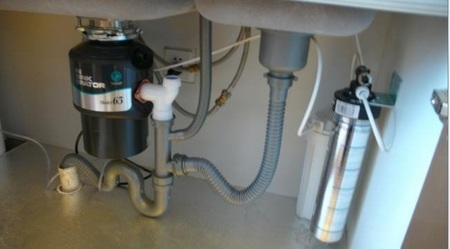 上面這個是比較實用的,實物垃圾處理器,右側的是凈水器。切菜做飯剩下的垃圾就直接處理掉了,十分方便 。垃圾處理器牌子是愛適易,銷售人員說是美國的一個牌子,型號是M65,價格是2533元。凈水器牌子是美國愛惠浦,價錢是1680元 。里面的水放出來能直接喝了,說是可以過濾到鉛汞。有了這個東西,實物垃圾就不用撈出來再倒進垃圾桶了 。