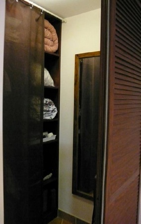 插播一張儲物間里面衣帽間的照片。還做了一面長鏡子。可以照全身。