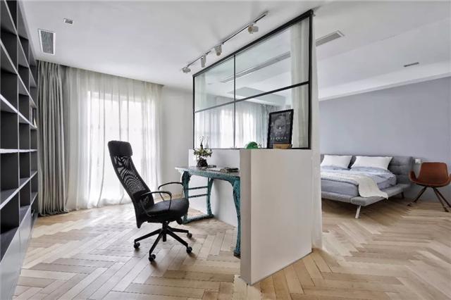 反觀臥室布局,除了睡眠區之外,還額外增加了一個小小的書房,對于平常喜歡讀書、學習或經常加班的人來說,實在是一個非常棒的設計。