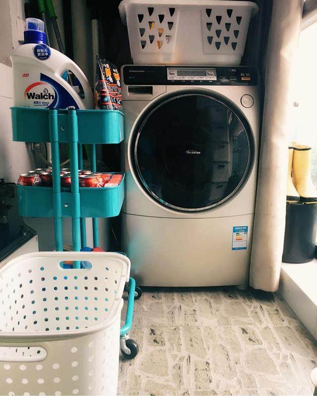 7▲洗衣區配一個多層收納筐,一切雜物都搞定。