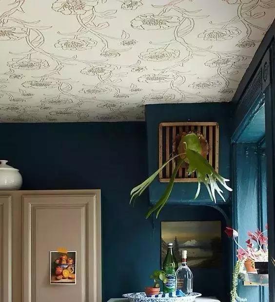 除了石膏圖案,還可以用墻紙裝飾屋頂哦,非常好看。