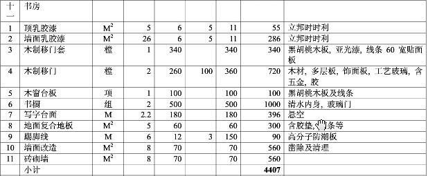 八、書房裝修預算清單