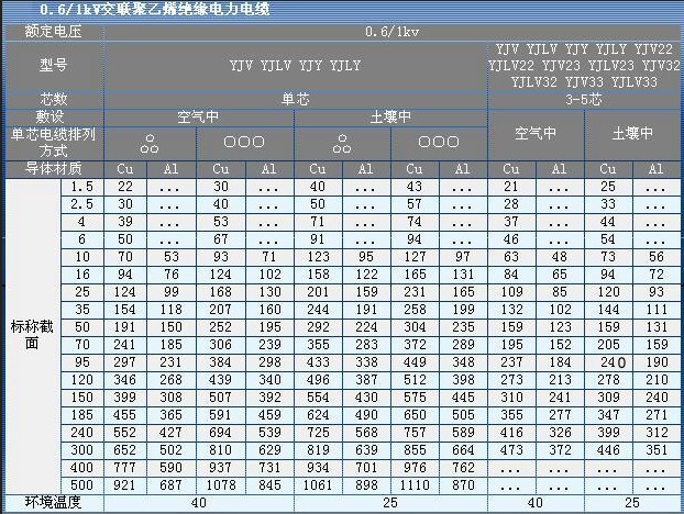 yjv電纜載流量表是由額定電壓、型號、芯數(shù)、單芯電纜排列方式、導(dǎo)體材質(zhì)等元素組成,以下就是我為大家提供部分yjv電纜載流量表一個(gè)詳細(xì)介紹: