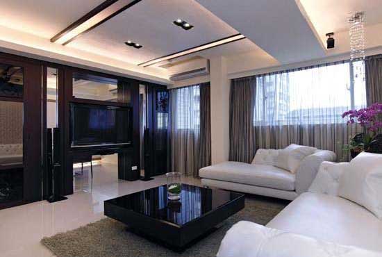 若客廳之中橫梁靠近墻邊,其最常見的解決方法,就是將采用造型包覆的方式,隱藏或轉移視線的注意力,使之降低壓迫感。例如圓弧包覆造型。