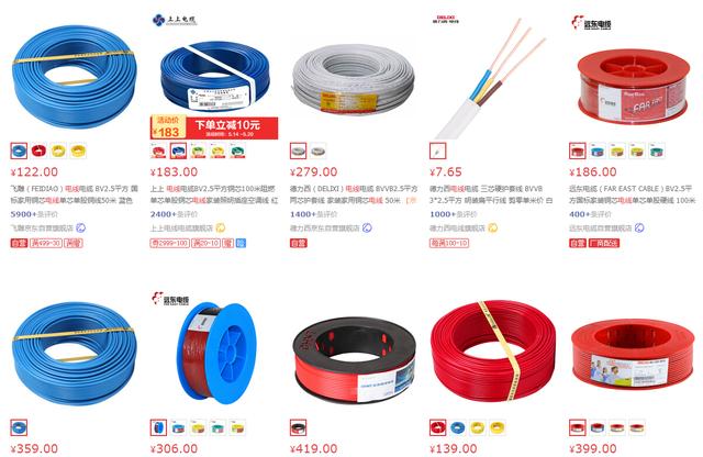 實體店的電線和網上賣的相比較,這個網上還是相對要便宜的,而且這個電線不管你用哪種形式進行裝修,基本上是不會出現問題的,而且網上購買力度相對來說都比較大,體積相對來說小,比較容易退換貨、