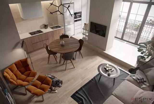 因此將客廳和餐廳融為一體,希望在保證空間流動性的同時擁有分離感是我們現下的目標。既然這樣,那我們就可以用顏色或者布局使空間更加美觀實用,讓最小的家也可以獲得靈感。