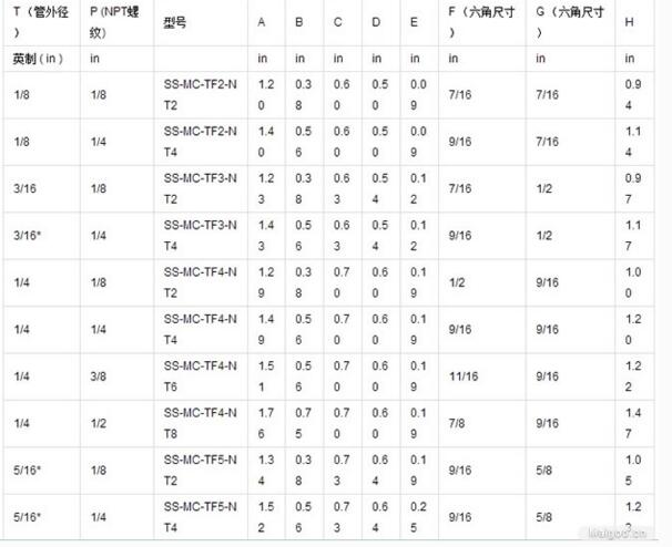 另外螺紋中的1/4、1/2、1/8標記是指螺紋尺寸的直徑,單位是英寸。