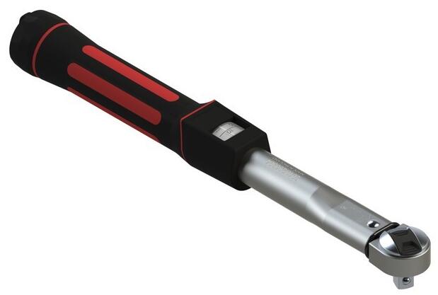 扭矩扳手-也叫扭力扳手或力矩扳手,力矩就是力和距離的乘積,在緊固螺絲螺栓螺母等螺紋緊固件時需要控制施加的力矩大小,以保證螺紋緊固且不至于因力矩過大破壞螺紋,所以用扭矩扳手來操作。首先設(shè)定好一個需要的扭矩值上限,當(dāng)施加的扭矩達(dá)到設(shè)定值時,扳手會發(fā)出“卡塔”聲響或者扳手連接處折彎一點(diǎn)角度,這就代表已經(jīng)緊固不要再加力了。