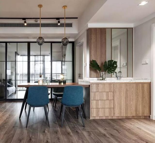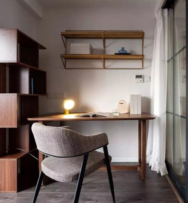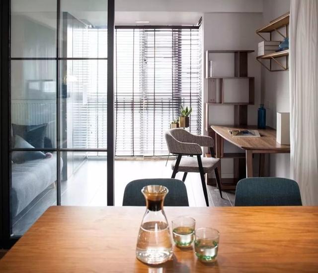 這套僅有80㎡的小房子,設計師在設計格局的時候打破了一成不變的設計,通過開闊的格局,為小家庭帶來了一個寬敞的家庭互動區;同時給玻璃窗戶安裝了竹藝百葉窗簾,確保了房間的采光,同時又可以隔絕一定的灰塵。