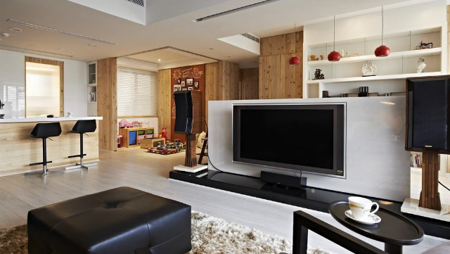 這種電視墻最大的好處就是,它可以360度的旋轉,也就是說,不管你是在客廳還是在陽臺,或者是餐廳上吃飯,你都可以 繼續追劇,特別是很喜歡看電視劇的朋友,這樣邊吃飯或是晾衣服的時候,都可以邊看電視劇,不怕會錯過精彩的劇情,而且這樣看起來也特別的美觀大氣,設計感十足,讓人有種眼前一亮的感覺,一看主人就是個很有品位的人。