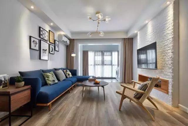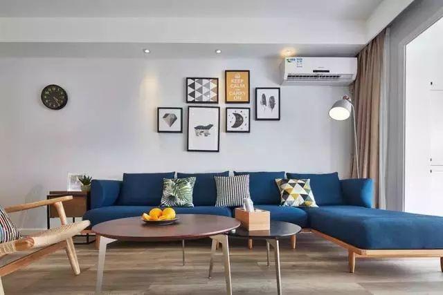一套深藍色木藝沙發成了這個客廳的一個顯眼裝飾,而且看起來也真是不錯呢。