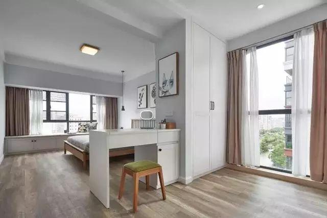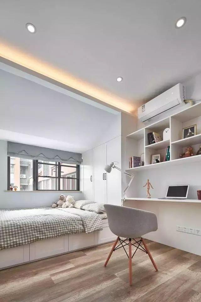 兒童房則采用了時下比較流行的榻榻米+柜子+書桌柜的一體式設計,實用性真的是很墻呢!