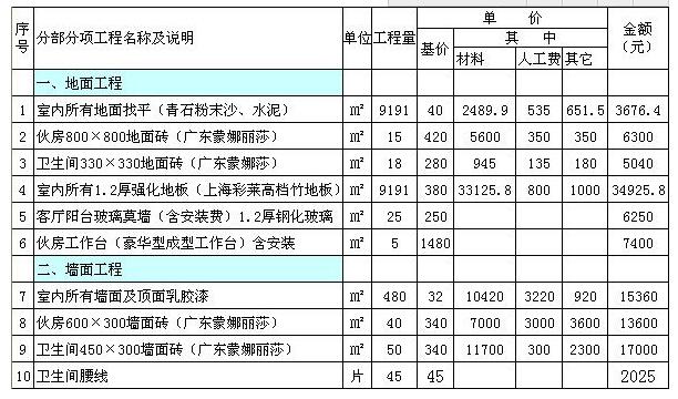 裝飾工程預(yù)算表(二)