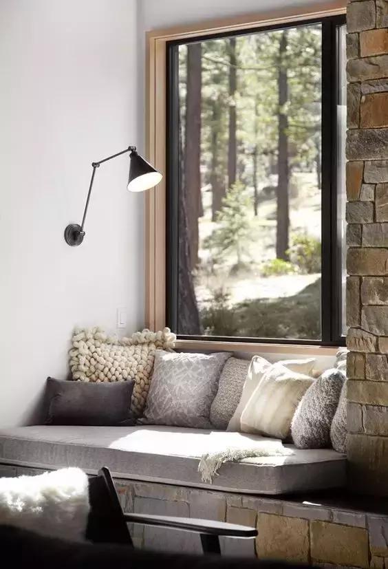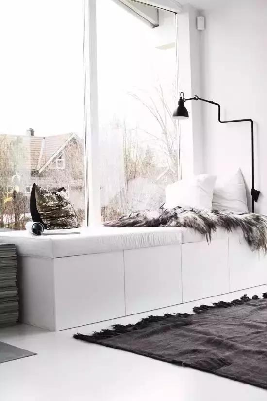 ▲柔軟的飄窗墊一鋪,溫暖舒適的感覺充盈室內。坐在上面曬曬冬日的陽光,閉目養神再合適不過了。