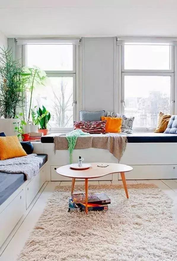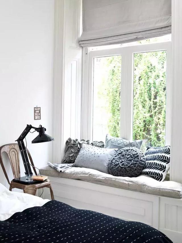 無論飄窗是哪種形式的,地臺上都會鋪上一層坐墊。特別是時下流行的石材臺面,冬天坐上去的時候,簡直是酷刑,這個時候坐墊不僅溫暖柔暖,還能搭配室內軟裝的裝飾,何樂而不為呢?