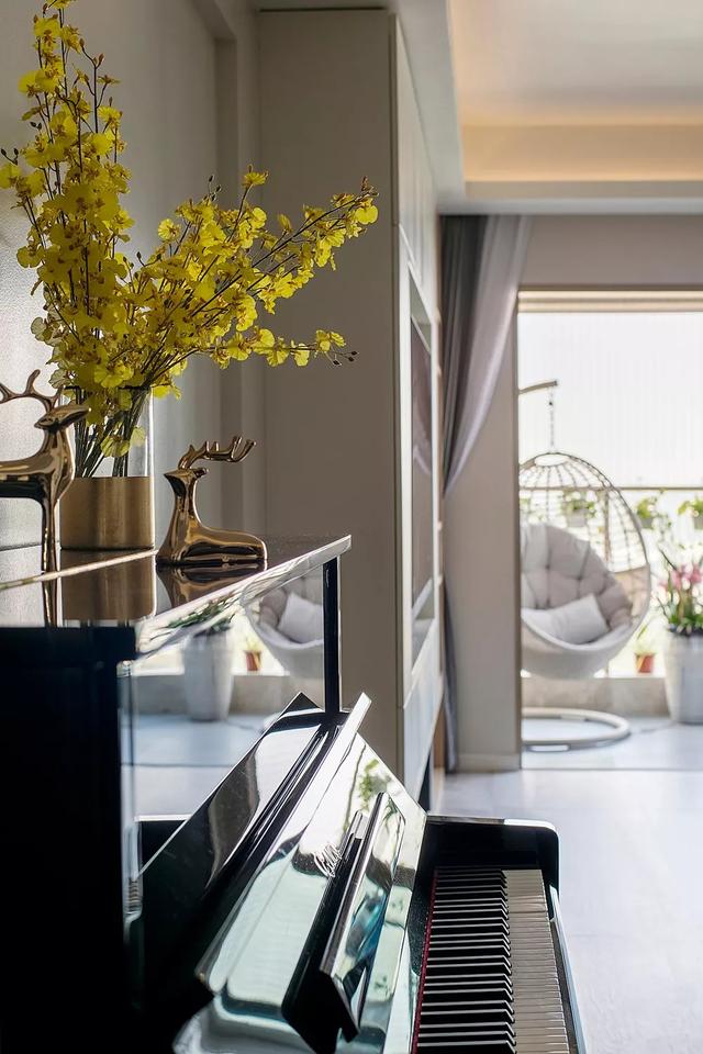 鋼琴本來就是一處風景,在臺面擺上飾件和裝飾畫,更顯得落落大方,滿滿的生活趣味。