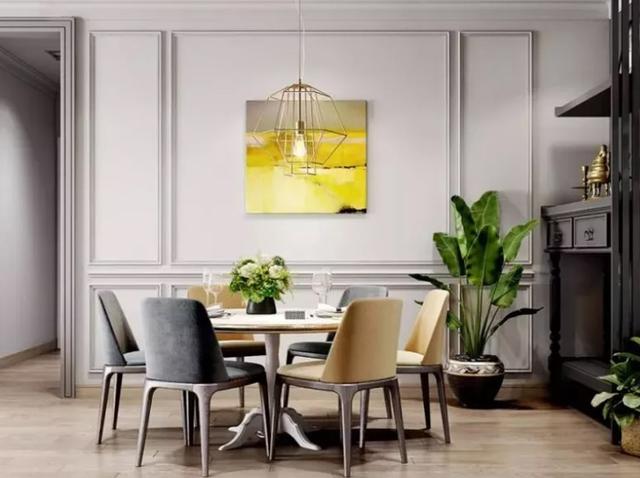 現在很多家庭除了貼壁紙,幾乎不會在墻上大做文章,而且一不小心很容易讓墻看起來很臟,如果你不喜歡夸張的裝飾,那么可以增加幾個細框線圖案,讓大白墻更有層次感一些。