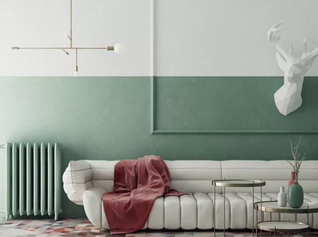 當然,你也可以將墻壁用不同顏色一分為二,既有時尚感,又有滿滿的生活趣味,而且看起來還十分簡潔大方。