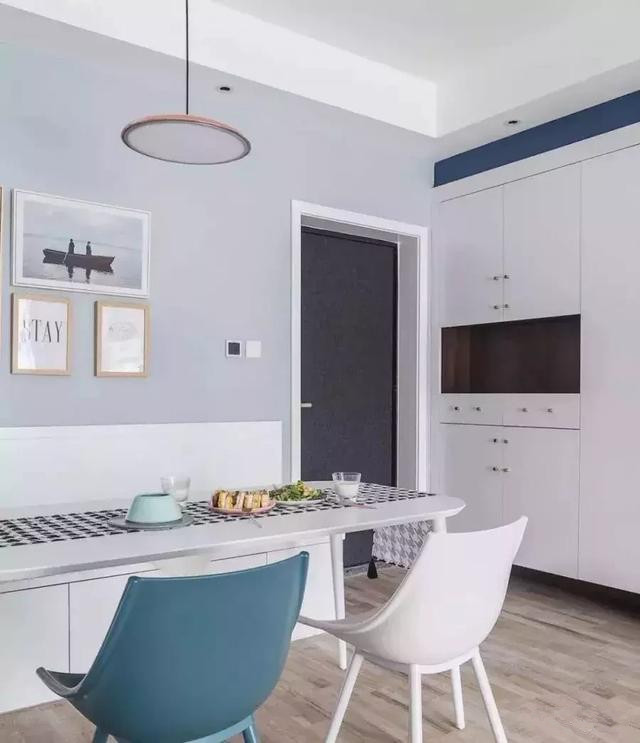 ▲這也是比較典型的一個穿堂剎戶型,進門如果沒有做隔板的話是直通到陽臺的窗戶的,但是在玄關部分做了一個立柜,巧妙的緩沖了視覺效果,形成了一個小小的玄關空間,美觀又具有強大的收納效果,不失為一個好的解決辦法。