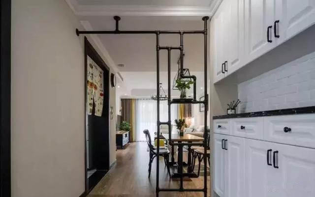 ▲用水管做造型隔斷,刷成黑色,也挺有創意的