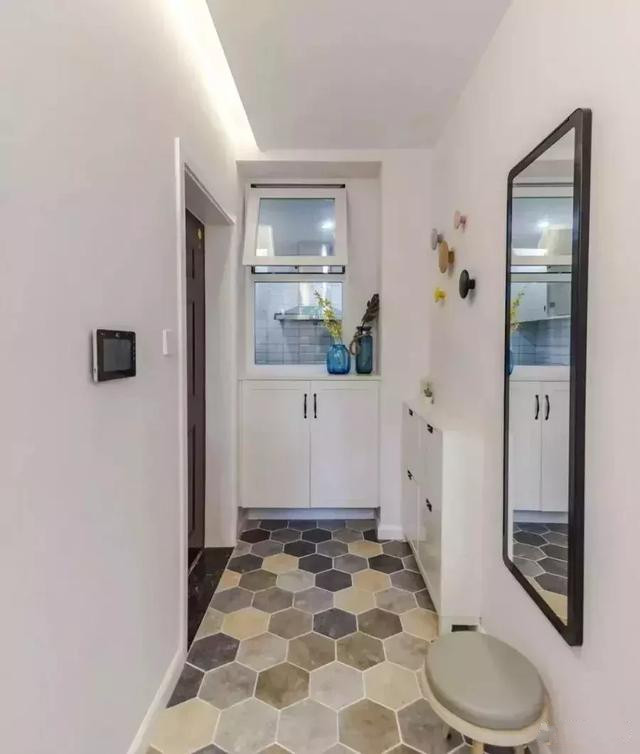 ▲ 這個小戶型原本也是進門對陽臺,一個書柜做隔斷,中間鏤空放了兩盆綠植,整個立面既解決風水問題,同時也非常實用,右邊做了鞋柜相結合,裝修之后就間接打造成了我們前面所提到的普通型玄關。