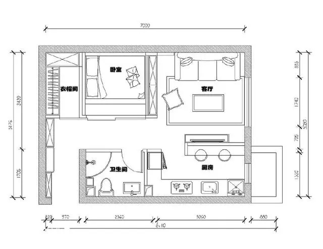 最后附上這套35㎡房子裝修的設計平面圖,可以看得非常的清楚。擁有了這樣一套小戶型的房子,在家看電影,做料理,甚至專注于小動物,時光荏苒,但是總有一塊是屬于自己的休閑時光。