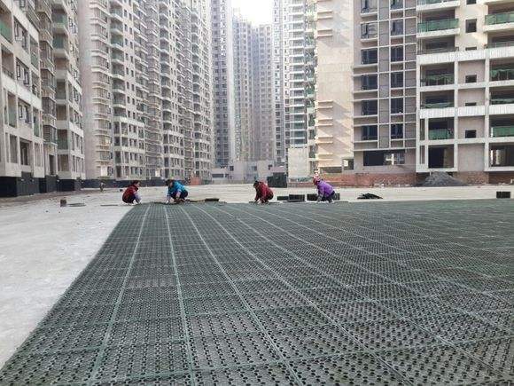 6.鋪裝后蓄排水層要采取保護措施,嚴禁在還沒覆蓋土的排水層上運輸和施工。