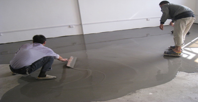 先用刷子把地面上起的灰塵給清除干凈,然后再用清水沖洗干凈,如果地面有裂縫或者凹坑的時(shí)候,可以先用水泥拌合少量的膠水制成的膩?zhàn)有扪a(bǔ),也可以用“堵漏王”修補(bǔ)。