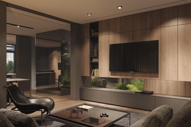 這個舒適的公寓裝修設計帶有室內綠色空間,是由Bezmirno建筑事務所的天才設計和視覺化的。320平方米的住宅分為兩個主要部分:第一部分是社交區,包括廚房、餐廳、客廳、家庭辦公室和茶室。住宅的第二部分擁有私人空間,包括主臥室、兩個兒童房間和獨立的浴室。整個兩個區域的裝飾都是平滑的暖色調,因此沒有粗糙的邊界。自然材料的使用使這個項目對環境負責,經過深思熟慮的選擇產生了一個精致和大氣的極簡主義室內空間。