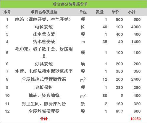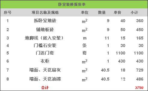 這樣算下來,這套40平米的房子在裝修上的花費是:客廳花去5200元,臥室的裝修報價為3800元,廚房用了6600元,衛生的裝修價格為4100元,綜合部分的裝修費用是11000元,總共的花費是30700元。所以這樣一套40平米的小戶型房子用3萬元也能夠輕松搞定,而且也相當的漂亮。