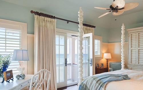 雙軌窗簾桿的材料以金屬和木質為主,風格也各有不同。鐵藝桿頭搭配絲質或紗質的窗簾,用在臥室中,有剛柔反差強烈的對比美。而木質桿頭,給人以溫潤的飽滿感,使用范圍和搭配風格不太受限制,適合于各種功能的居室。