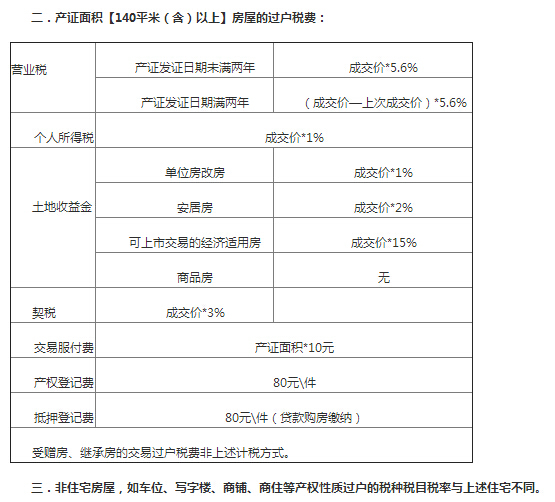 3、房產證滿2年的,并且面積在140㎡以上的需要繳納房產交易盈利部分的5.6%;