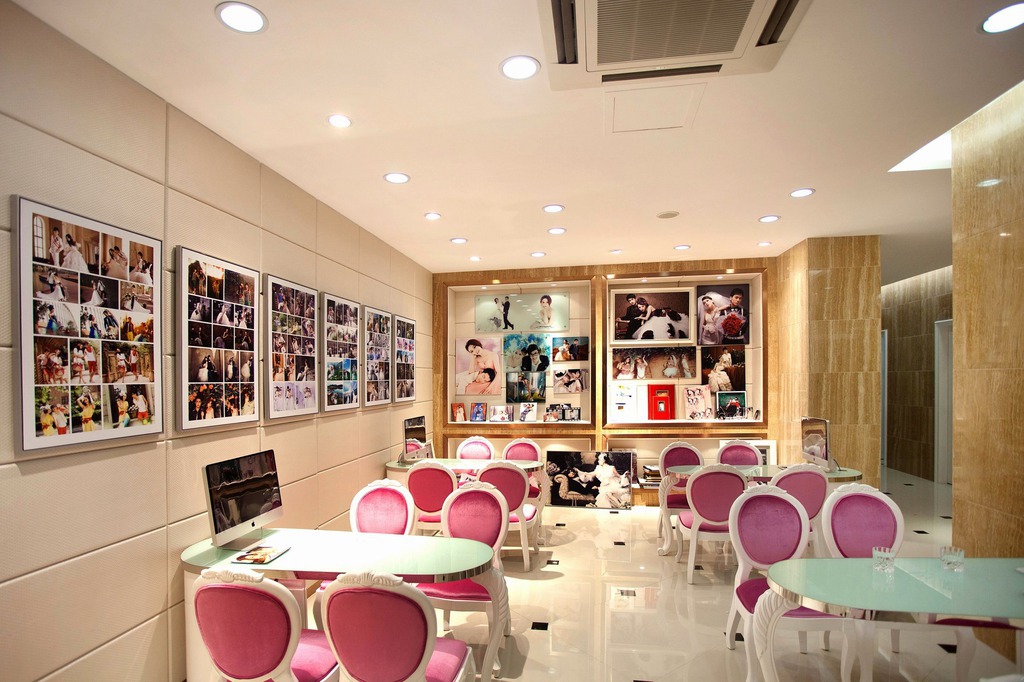 婚紗影樓的櫥窗是影樓的第一展廳,櫥窗就像是小店的“眼睛”,店面這張臉能否吸引住路人,這只“眼睛”可是有舉足輕重的作用。影樓裝修要通過巧用布景、道具及背景畫面裝飾,配以合適的燈光、色彩和最新流行的婚紗禮服,把影樓整體的裝修風(fēng)格與品位在櫥窗藝術(shù)里得到展現(xiàn)。因?yàn)橄M(fèi)者在進(jìn)入影樓之前,都要有意無意地瀏覽櫥窗,所以,櫥窗的設(shè)計(jì)與宣傳對消費(fèi)者拍攝的選擇有重要影響。